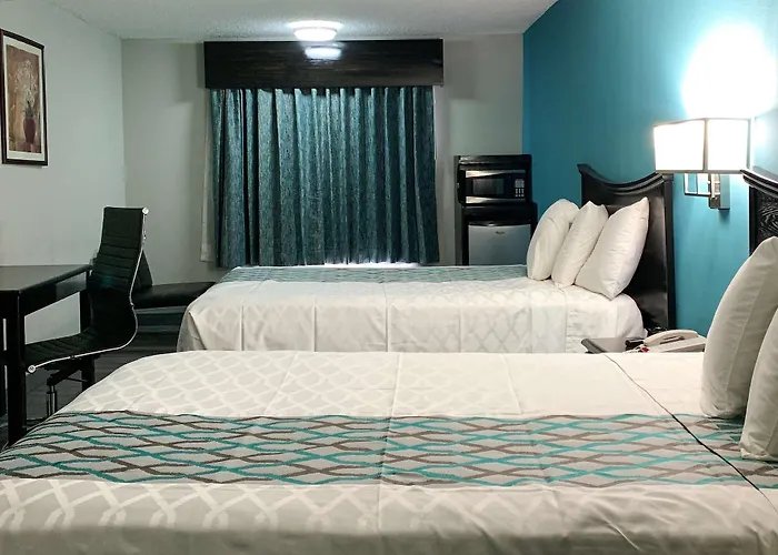Knights Inn - Nashville Downtown features a central location that makes exploring the city convenient. The hotel offers outdoor swimming facilities and connects guests to Walmart with free shopping shuttles. Each room includes essential amenities like a roll-away bed and a small refrigerator for convenience. The hotel is near popular attractions such as Music City Walk of Fame Park and is a short drive from Nashville International Airport.